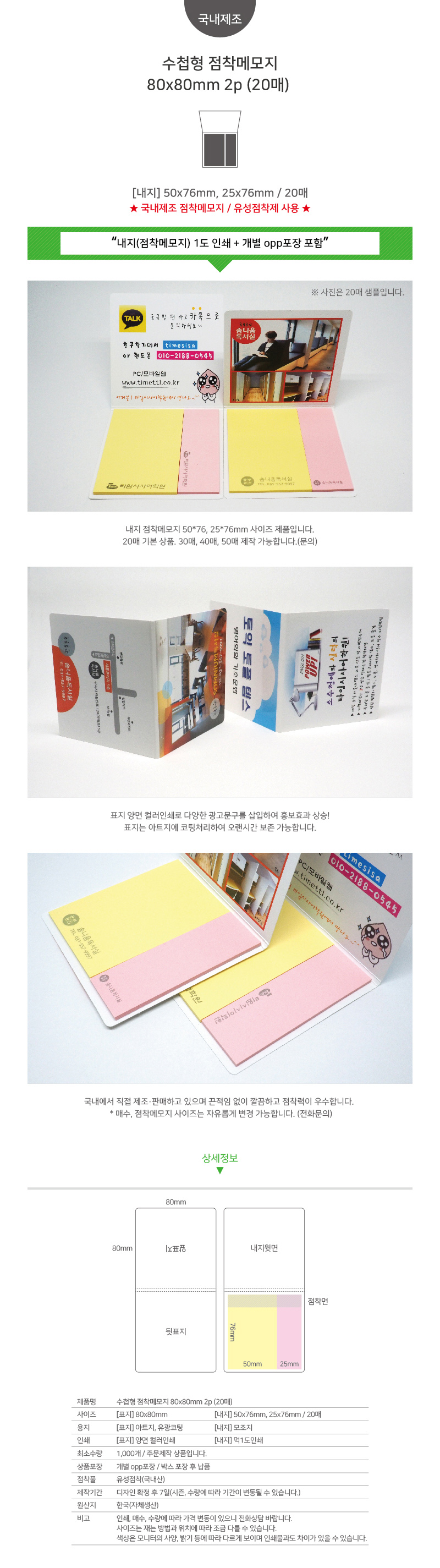¼öøÇü Á¡Âø¸Þ¸ðÁö 80x80mm 1ÂÊ (20¸Å/30¸Å/50¸Å) 1P
