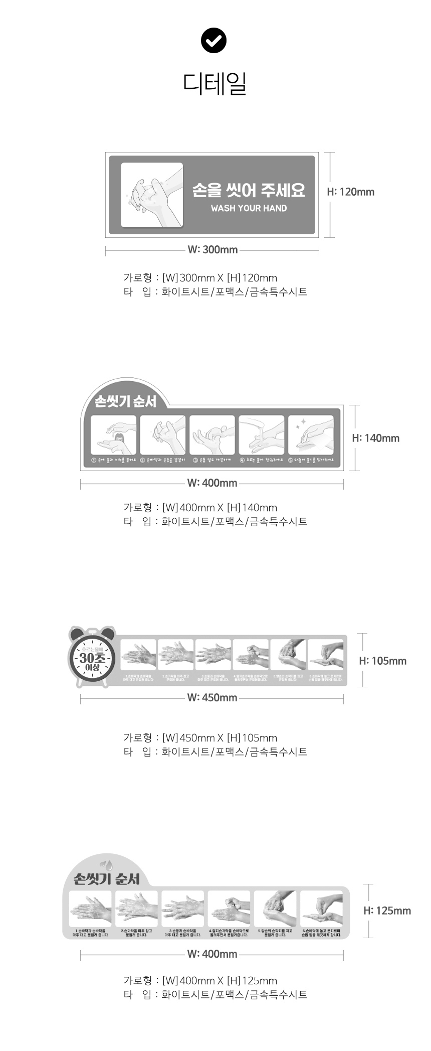 ¿Ã¹Ù¸¥ ¼Õ¾Ä±â °¨¿°¿¹¹æ ¾È³»½ºÆ¼Ä¿ 400x140mm ±Ý¼ÓƯ¼ö½ÃÆ®
